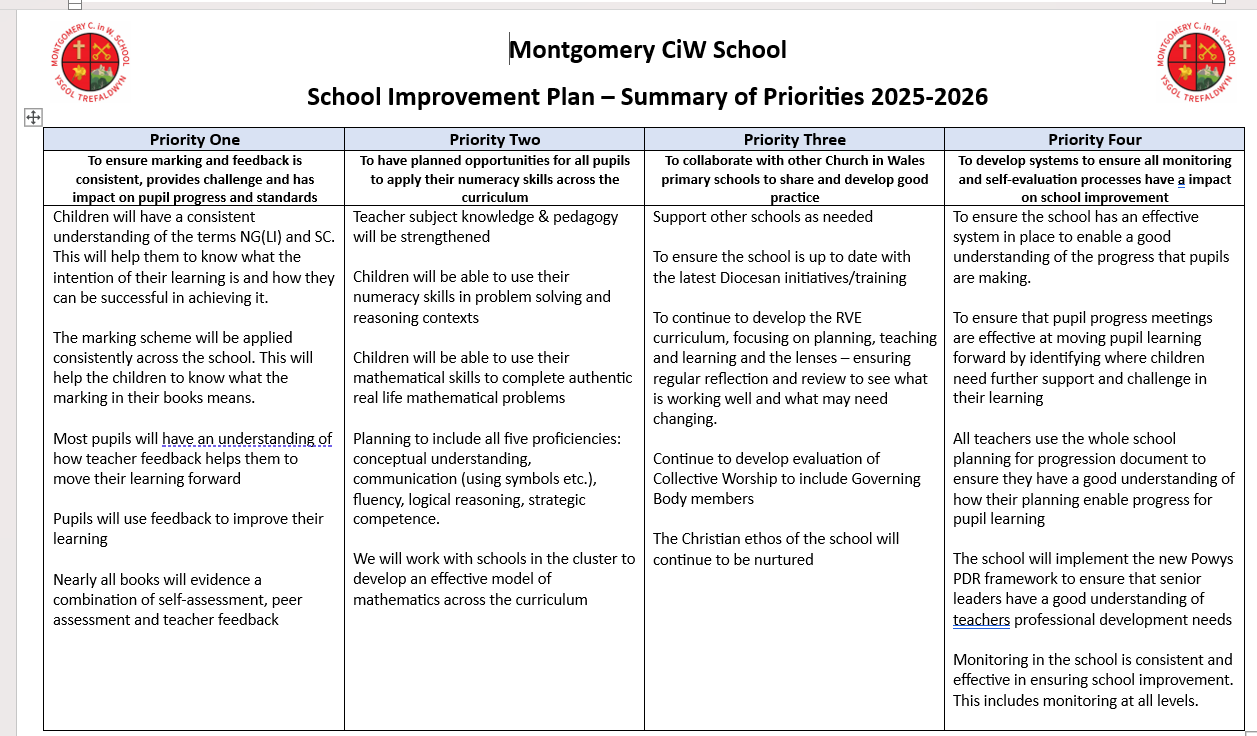 Each year the school sets out priorities in key areas that will continue to improve the enjoyment, engagement, and outcomes for all our children. This is called our 'School Improvement Plan' (SIP)